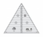 Cut 30 and 60 degree angles up to a finished height of 8 inches. This 60 degree equilateral triangle features easy to read black and white markings. A 1/4 inch dashed line is printed on each side of the center vertical line so you can cut 30 degree triangles that include the seam allowance.